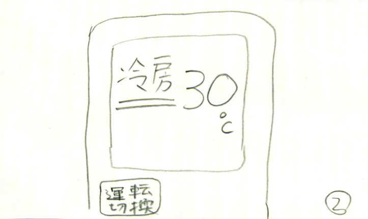 リモコンを見ると、「冷房(れいぼう)」の30℃。