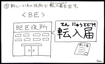 ④まで終わったら、学校の先生に「引っ越しました」と言いましょう。