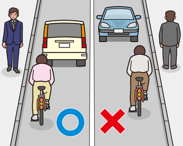 ➀車道の左側を通る。