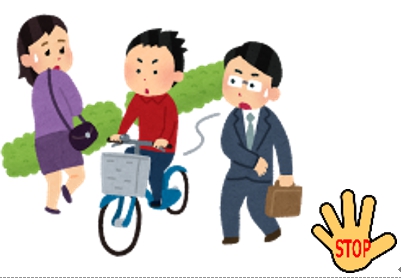 ②歩道を通る時、歩行者優先。ゆっくり車道側を通る。